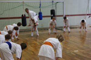 В программу лагеря, кроме традиционных тренировок по кихону, боевой подготовке, ката и работы с Бо вошли такие “новости” для наших младших групп как работа с тонфой, предоставленная Сэнсеем Карстеном Фишером – неизменным участником наших зимних школ, тренировка в воде и под водой для старших по возрасту бойцов клуба, гимнастические элементы для малышей и многое другое.
