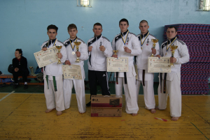 Каждая страна в преддверии первого объединенного чемпионата МИРА, который пройдет в Болгарии в октябре этого года, проводит у себя отборочные чемпионаты, которые выявляют сильнейших бойцов разных федераций и организаций каратэ киокушин. Мы получили приглашение на чемпионат Украины и не могли им не воспользоваться, чтобы сравнить свою форму на сегодня относительно украинской сборной. Трое лучших бойцов мужских категорий – Никита, Артем и Игорь и двое наших сильнейших юниоров: Беслан и Кристоф отправились на этот чемпионат.