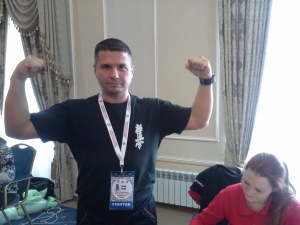 Н аши воспитанники Игорь Ангальд и Артем Сергеев выступили не важно – выиграв по одному бою они уступили почти сразу своим вторым соперникам. А вот ветеран нашей школы, которого мы выпустили на татами только за его преданность к киокушин нас удивил не на шутку – он выиграл на вазари одного из очень сильных болгар, выйдя в полуфинал и заняв третье место! Илья Ильин принес в копилку немецкой команды бронзу чемпионата МИРА впервые за очень много лет! Спасибо ему огромное, за то, что он ещё раз доказал – дух в каратэ имеет решающее значение.
