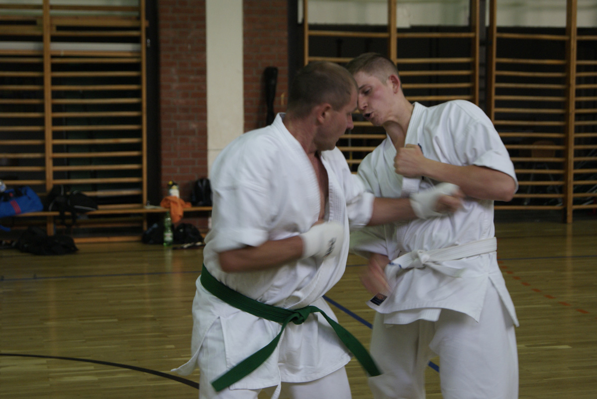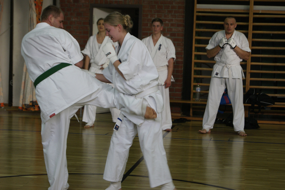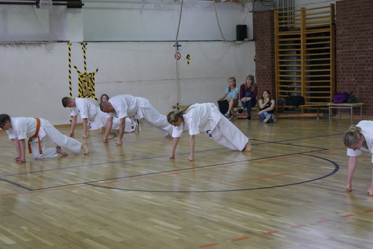 Внеплановые экзамены нашей школы для восьми человек, которые в силу объективных обстоятельств не смогут присутствовать на летней школе в лагере Вербеллин, успешно закончились! Сразу 2 оранжевых и четыре синих пояса появились у нас в Dankezu, а ещё два человека поднялись на очередные ступени ученических степеней, получив синюю и коричневую полоску на свои пояса!