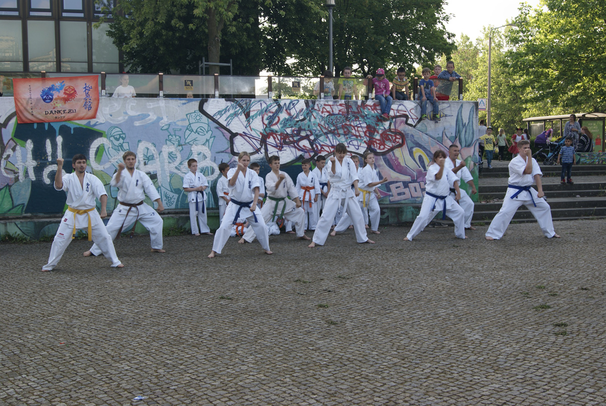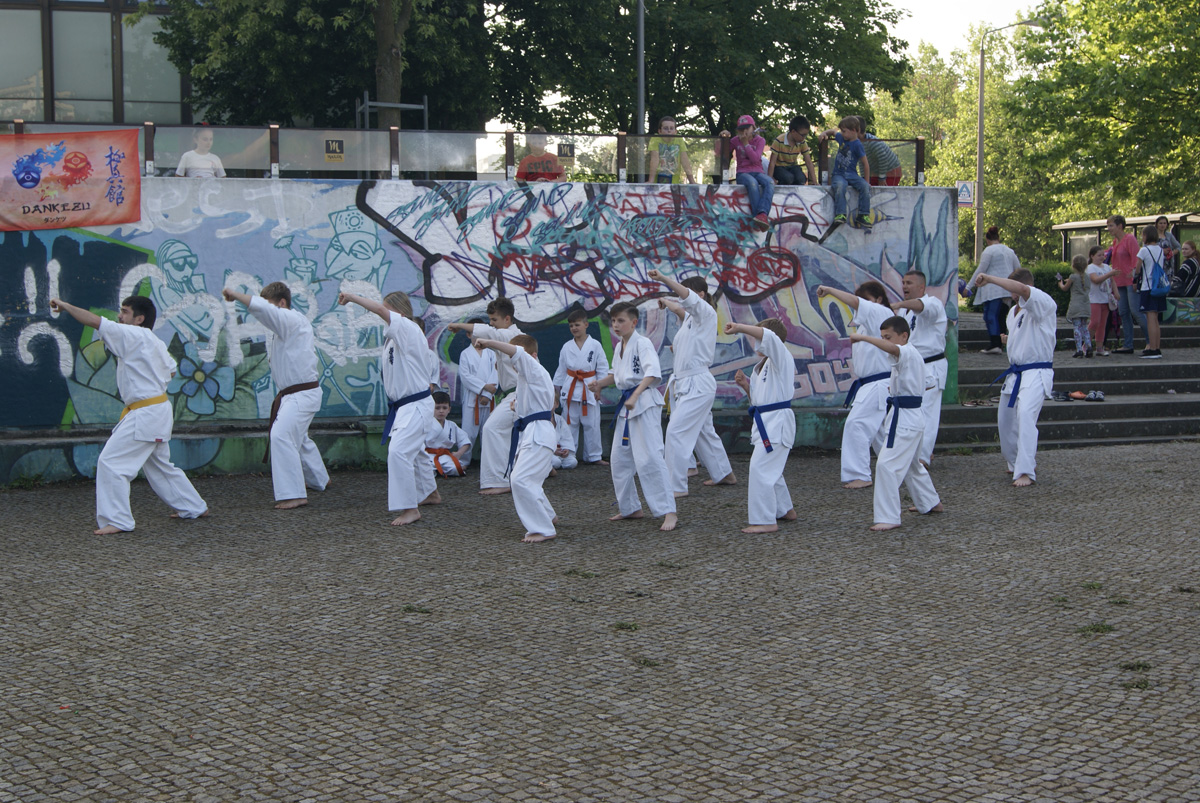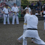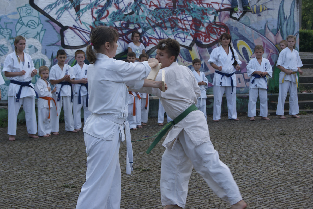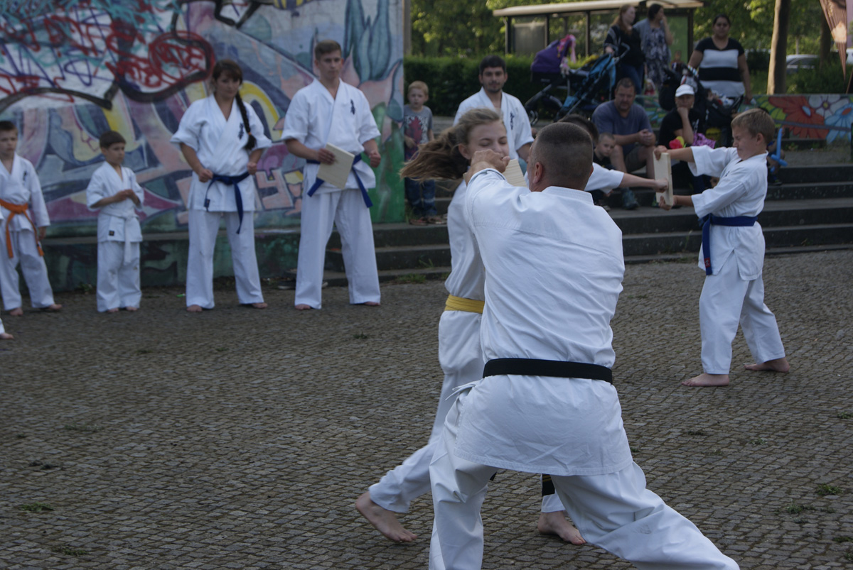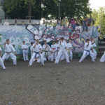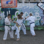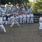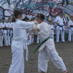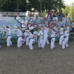Наши бойцы из DANKEZU построили треугольник, символизирующий группы в нашей школе – от самого маленького “новичка” с белым поясом, до чемпионов Европы и Сэнсея. Все ката и техники были выполнены классно, бои продемонстрированы жестко, доски разлетелись, пусть и не с первого раза, но ВСЕ!