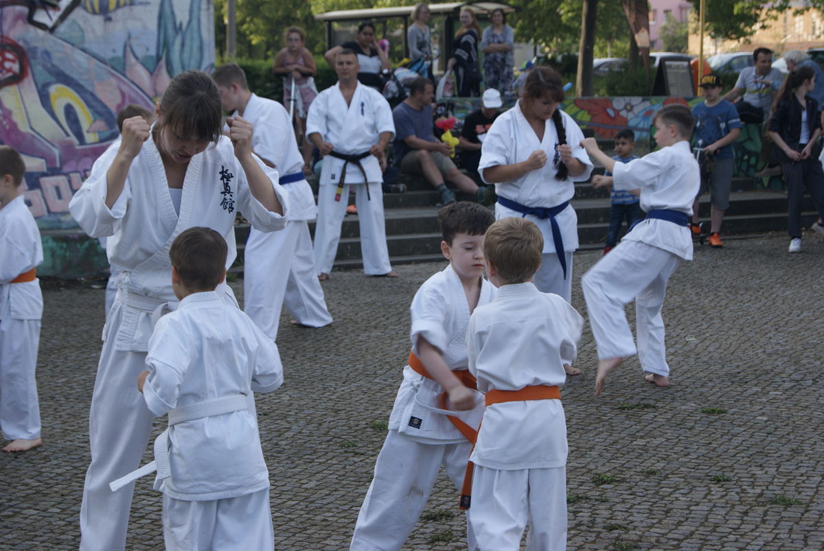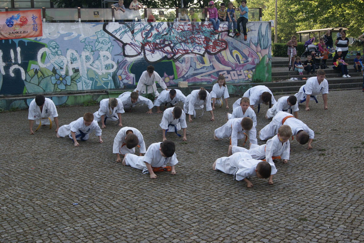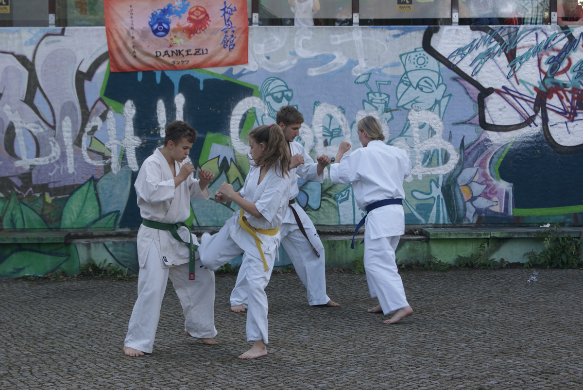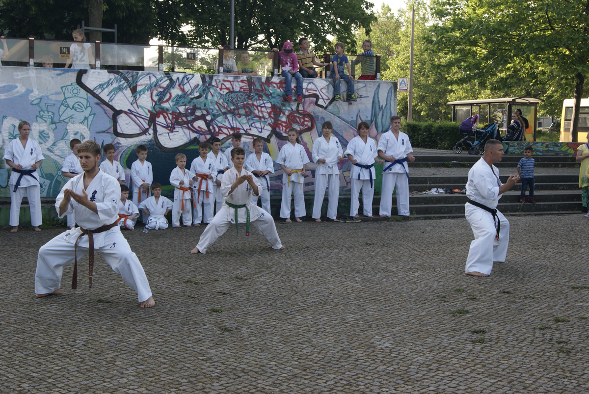Наши бойцы из DANKEZU построили треугольник, символизирующий группы в нашей школе – от самого маленького “новичка” с белым поясом, до чемпионов Европы и Сэнсея. Все ката и техники были выполнены классно, бои продемонстрированы жестко, доски разлетелись, пусть и не с первого раза, но ВСЕ!