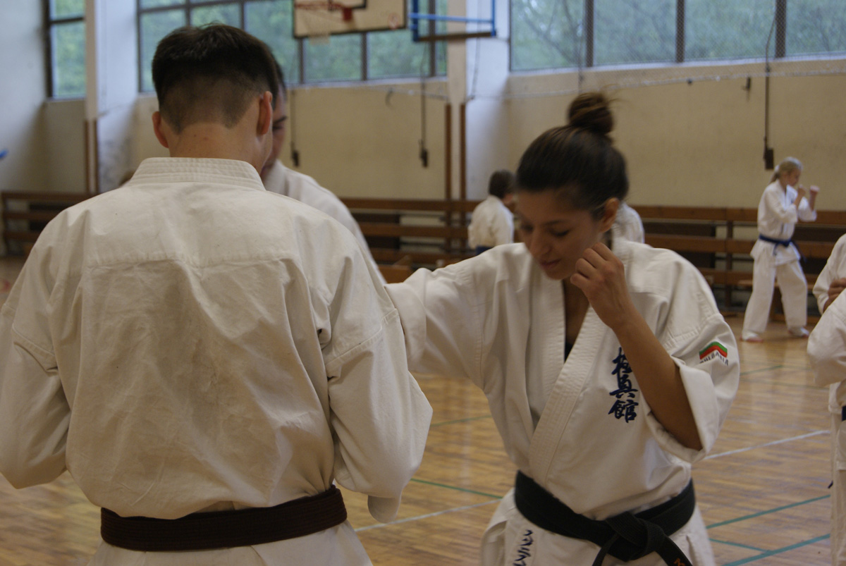 Нам очень повезло – красивейшая девушка Болгарии, сочетающая в себе необычайную грацию с настоящей киокушиновской силой, провела сразу два семинара в нашем Додзё! В группе новичков и оранжевых поясов Станислава поделилась методикой улучшения растяжки, как главного физического качества юных бойцов.