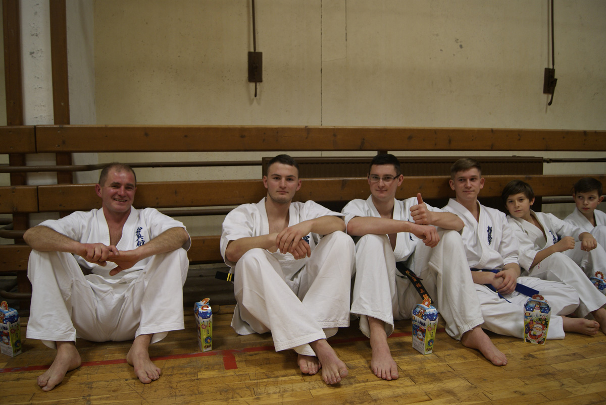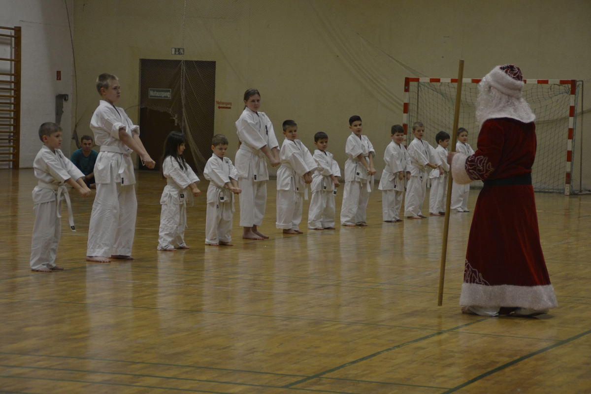 После традиционной тренировки по каратэ у нам пришёл Дед Мороз и принес целый мешок подарков! Бойцы нашей школы, разделившись по поясам, выполняли задания Деда Мороза, а танцовщицы подарили дедушке новые танцы. Мамы и папы, выполнившие все упражнения так же получили подарки! Спасибо всем, кто был рядом с нами целый год, спасибо всем, кто поддержал нас в этот вечер. Всех с наступающим, 2017-м годом!!!