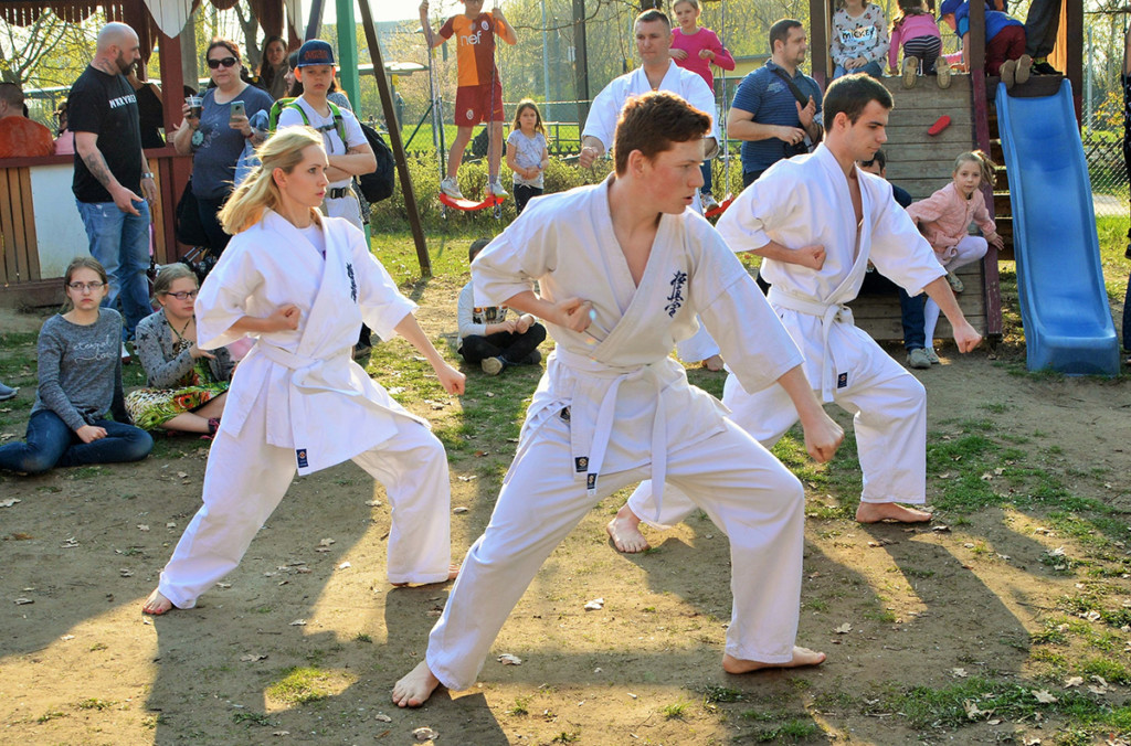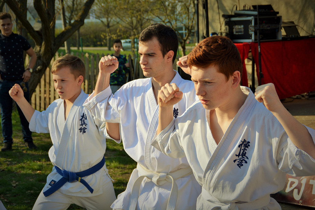 Весеннее выступление на уличном празднике совпало с самой теплой погодой за последние четыре месяца! Команда уже не новичков, но всё равно не совсем матерых бойцов Dankezu продемонстрировала все стороны каратэ киокушин – от кихона до кумитэ.