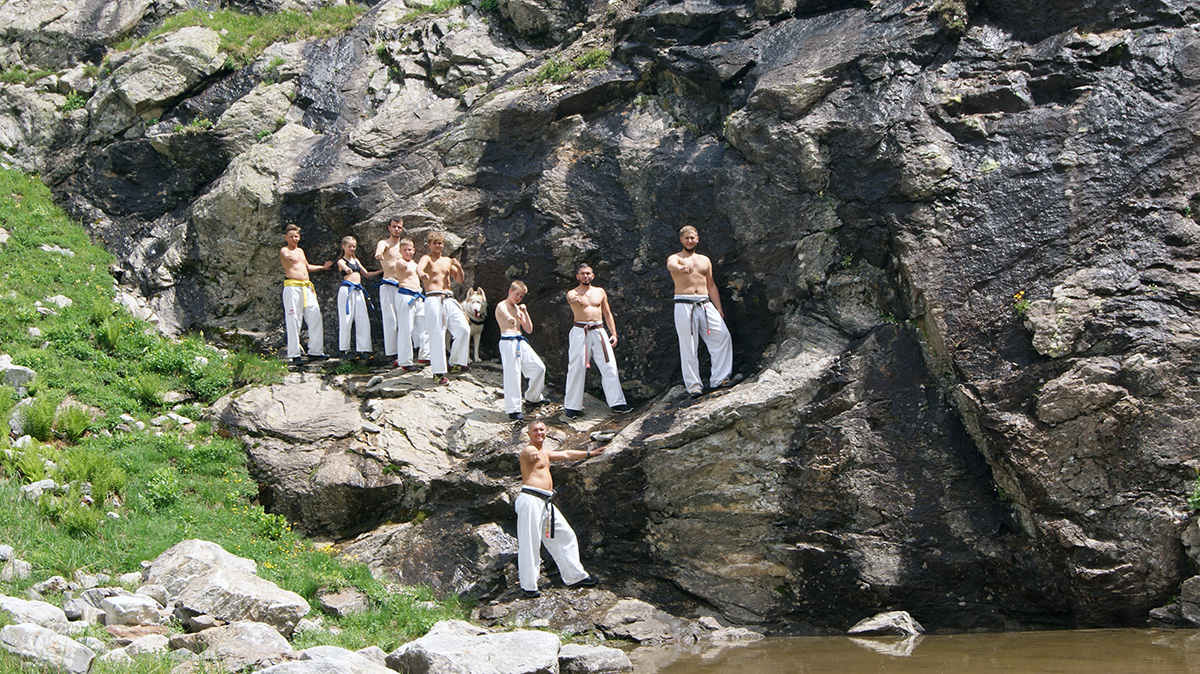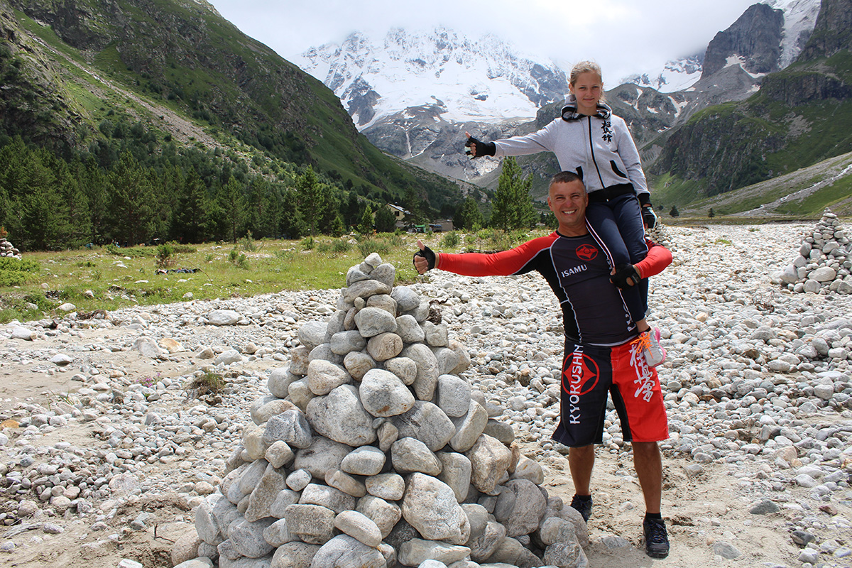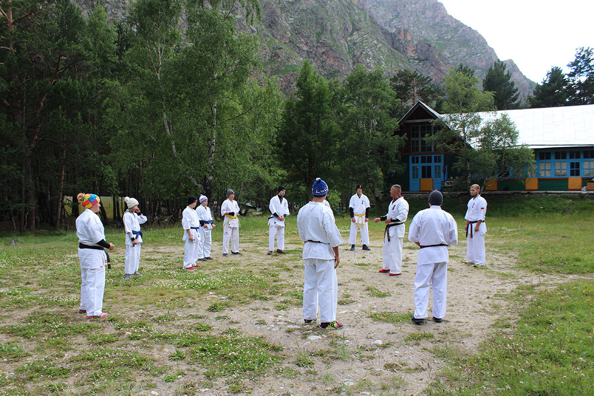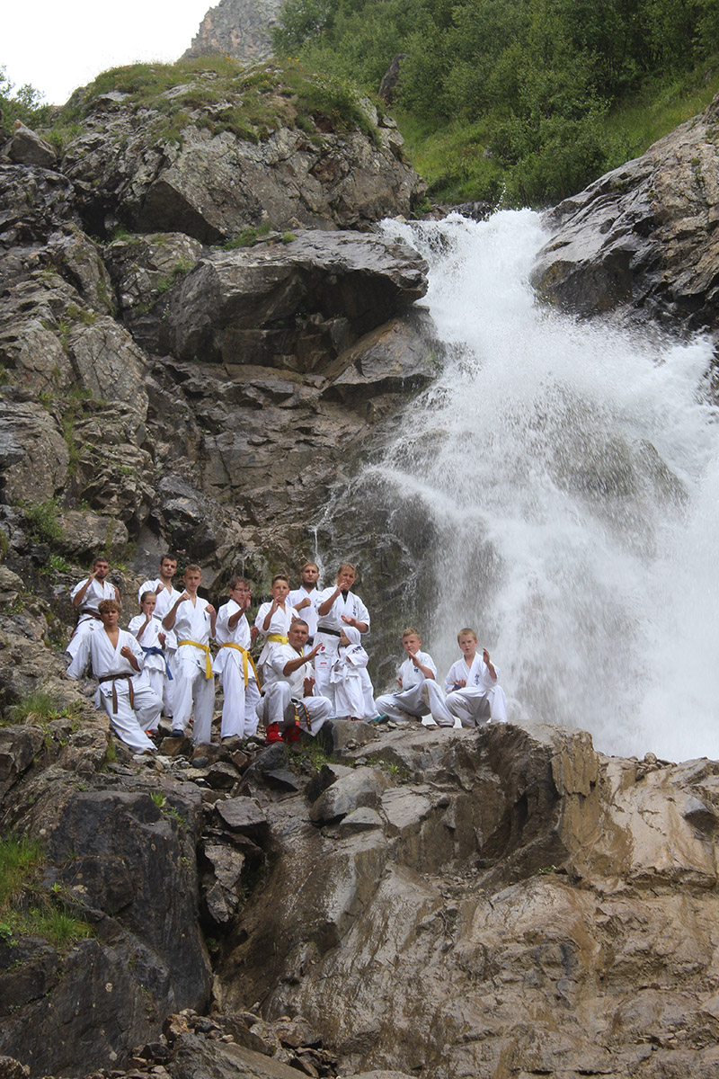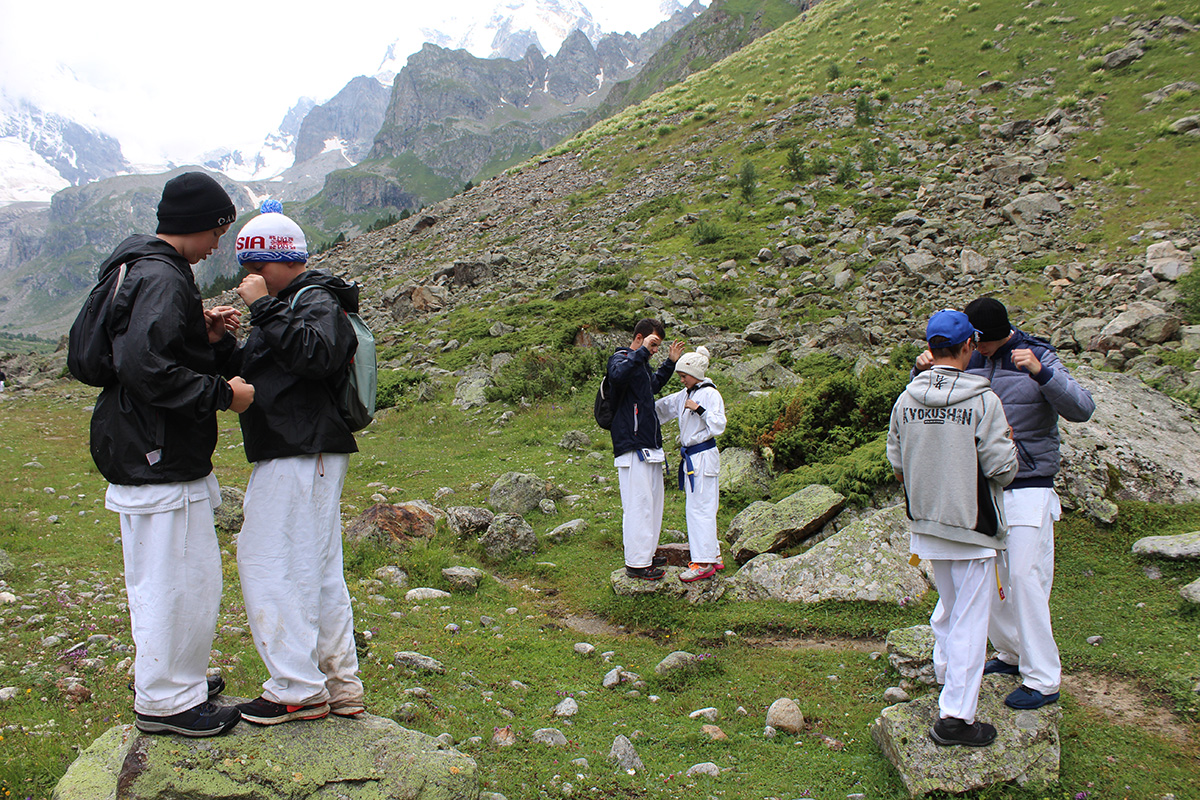 Невероятная красота Кавказских гор придавала нам сил и вдохновляла на новые подвиги. Сэмпай Иван сумел сходить в один поход дважды – он вернулся к роднику и принес 20 литров воды один! Дима Тюменцев придумал новое ката и воплотил его в жизнь, Юля, единственная прилетевшая из Германии девочка, сражалась с парнями на равных, Стивен умудрился пораниться в первые же дни, но участвовал во всех тренировках по полной. Кевин помогал Сэнсеям в любых организационных вопросах, Роберт и Никита стойко переносили холод и отсутствие интернета, Штефан боролся сам с собой, а Кирилл набирался эмоций и сил больше всех. Отдельно хочу отметить маму Любу Тюменцеву, которая прошла все тропы, побывала с нами на всех тренировках и сделала невероятно красивые фото всего нашего приключения на Кавказе!