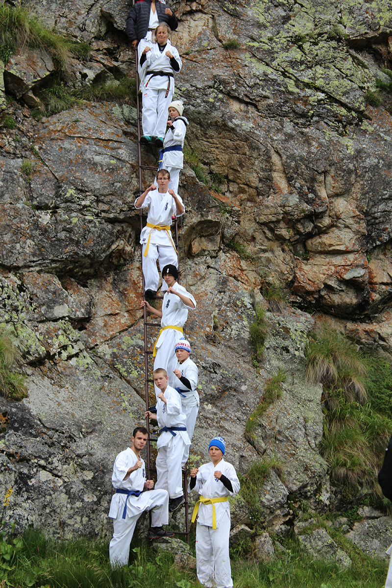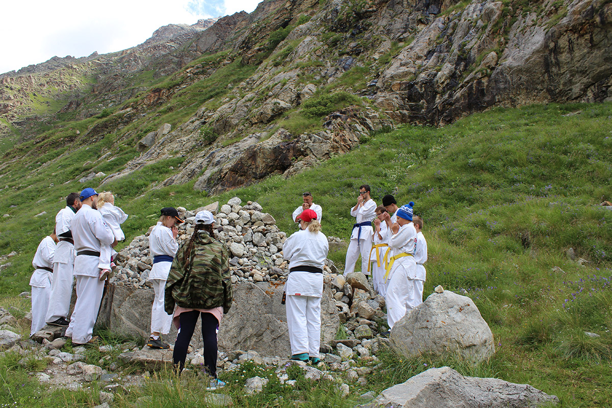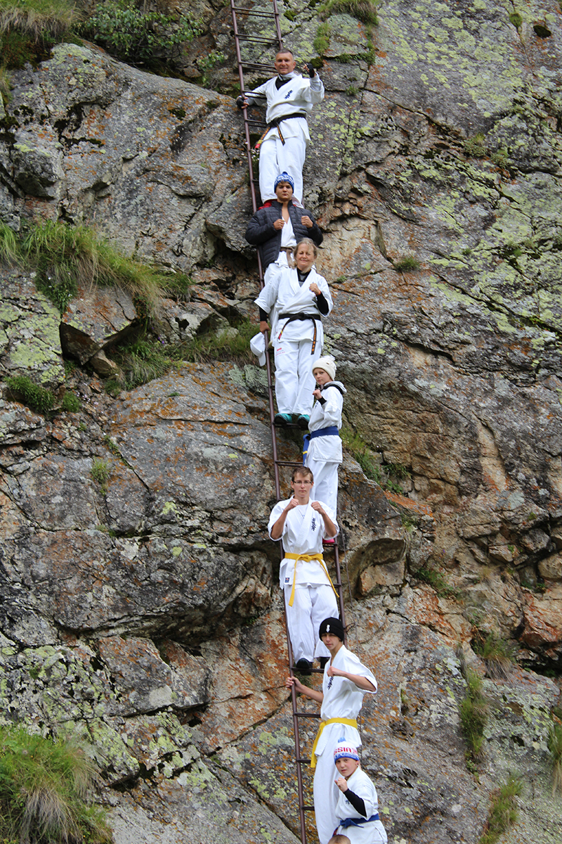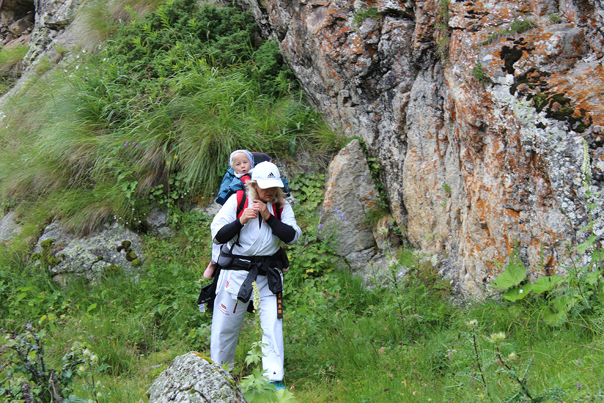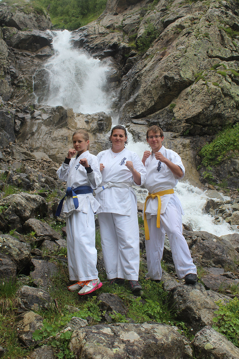 Невероятная красота Кавказских гор придавала нам сил и вдохновляла на новые подвиги. Сэмпай Иван сумел сходить в один поход дважды – он вернулся к роднику и принес 20 литров воды один! Дима Тюменцев придумал новое ката и воплотил его в жизнь, Юля, единственная прилетевшая из Германии девочка, сражалась с парнями на равных, Стивен умудрился пораниться в первые же дни, но участвовал во всех тренировках по полной. Кевин помогал Сэнсеям в любых организационных вопросах, Роберт и Никита стойко переносили холод и отсутствие интернета, Штефан боролся сам с собой, а Кирилл набирался эмоций и сил больше всех. Отдельно хочу отметить маму Любу Тюменцеву, которая прошла все тропы, побывала с нами на всех тренировках и сделала невероятно красивые фото всего нашего приключения на Кавказе!