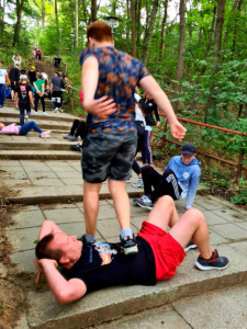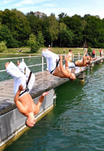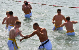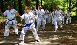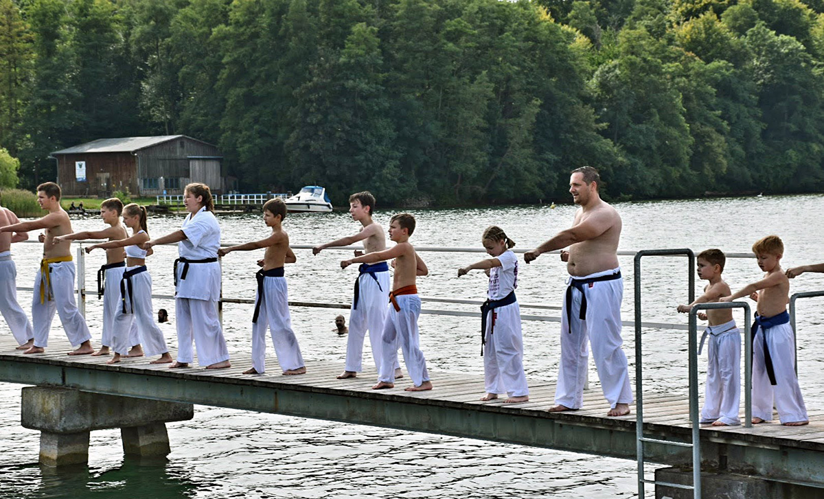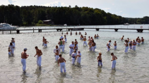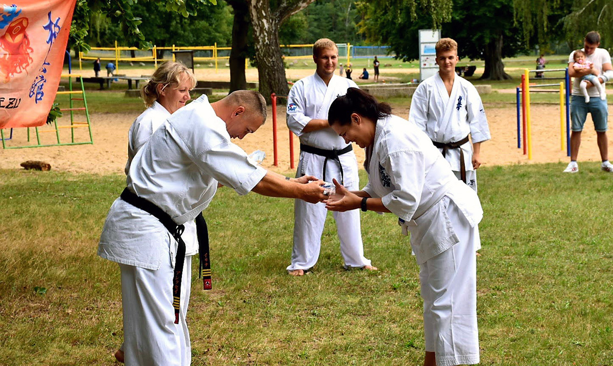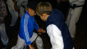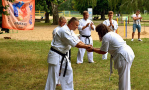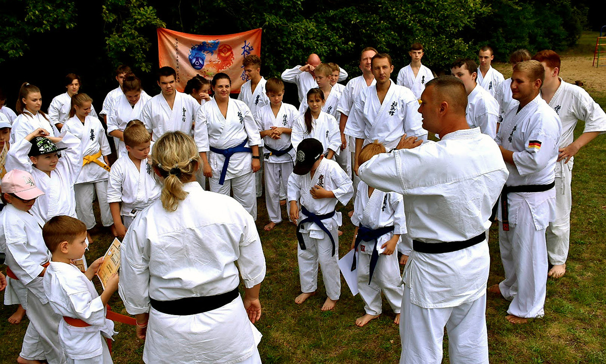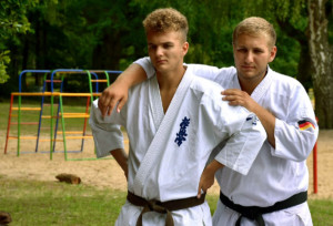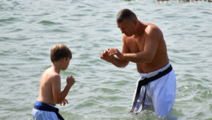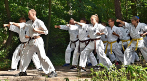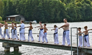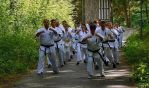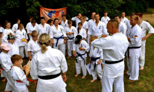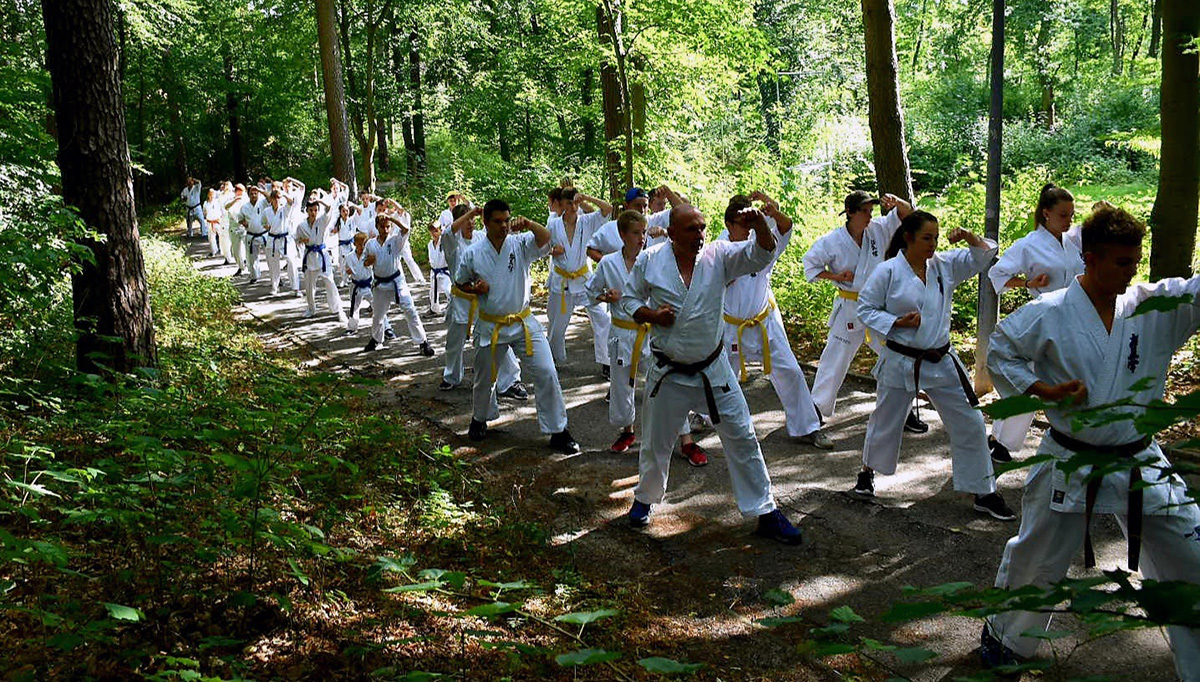 Традиционную “Лестницу-убийцу” покорили практически все, выполнив за час тяжелейшие 4 упражнения с собственным весом и с помощью партнера. Тренировку по классическому кихону наблюдали все гости – целый час вся команда выполняла техники, передвигаясь по всей территории лагеря. Тренировку по кумитэ провели без пауз – только бои, без времени, пауз и страха! Ну а игровые задания в первый день – эстафеты, футбол, волейбол и плавание понравились абсолютно всем и дали заряд на все три дня.