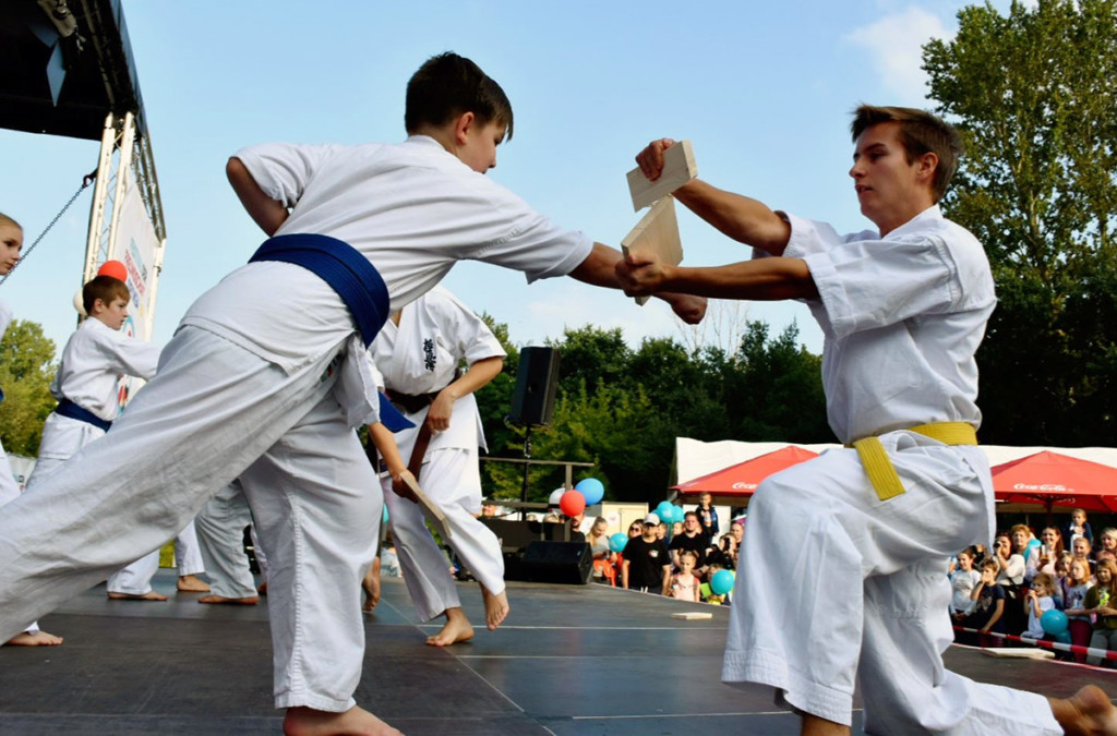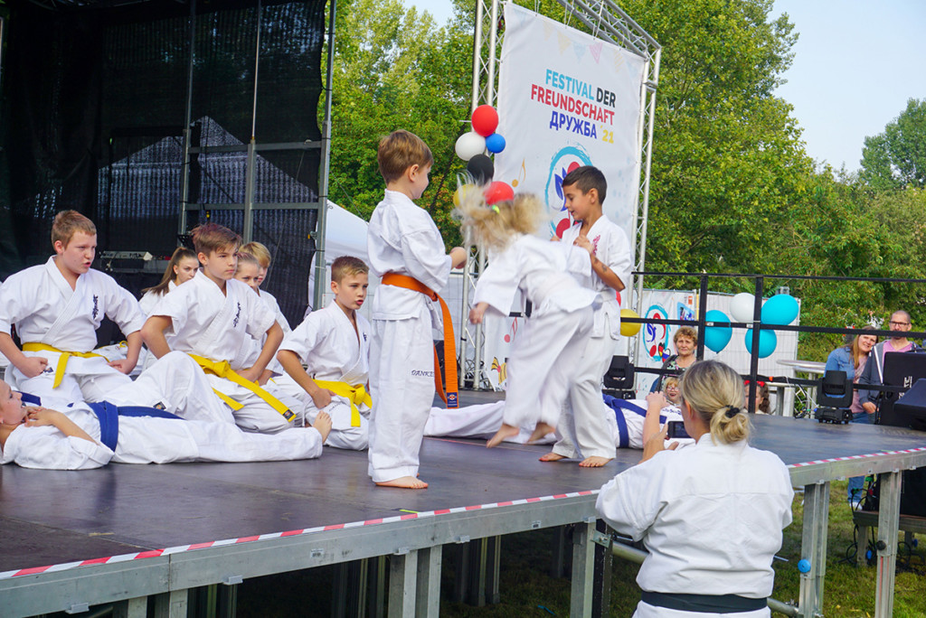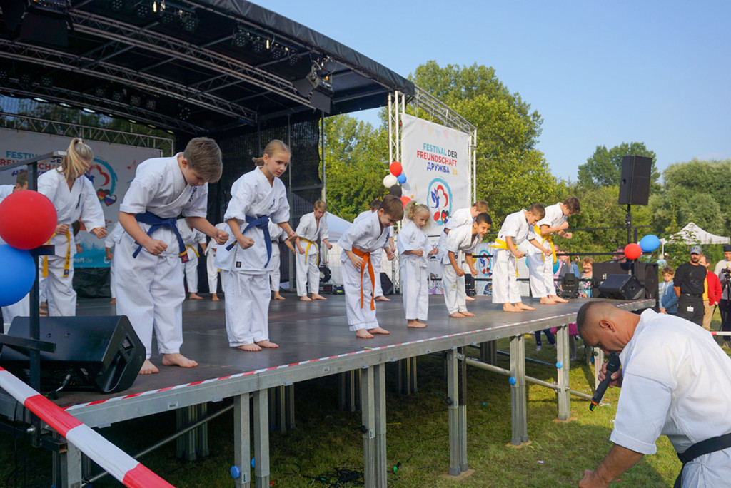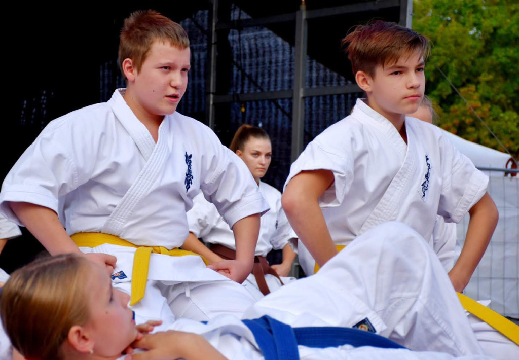 Младшие девочки из Danzu открыли наше выступление, охрана помогла отодвинуть зрителей на нужное нам от сцены место, и тут началось: гейши провели обряд чайной церемонии, и вывели самураев на сцену. Самураи в свою очередь продемонстрировали кихон, и  вышли на путь кумитэ – моментально сразившись с партнерами по очереди!