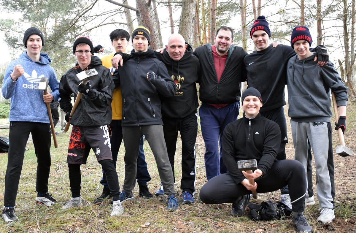 Мы решили уделить каждому дню по одному из физических качеств или по одной составляющей нашего каратэ. В первый день мы занимались Кихоном, выходящим за рамки стандартного базового регламента. Во второй день мы развивали силу – главный инструмент бойца: топоры и кувалды поехали как бабочки, камни и наливные мячи летали как птицы!