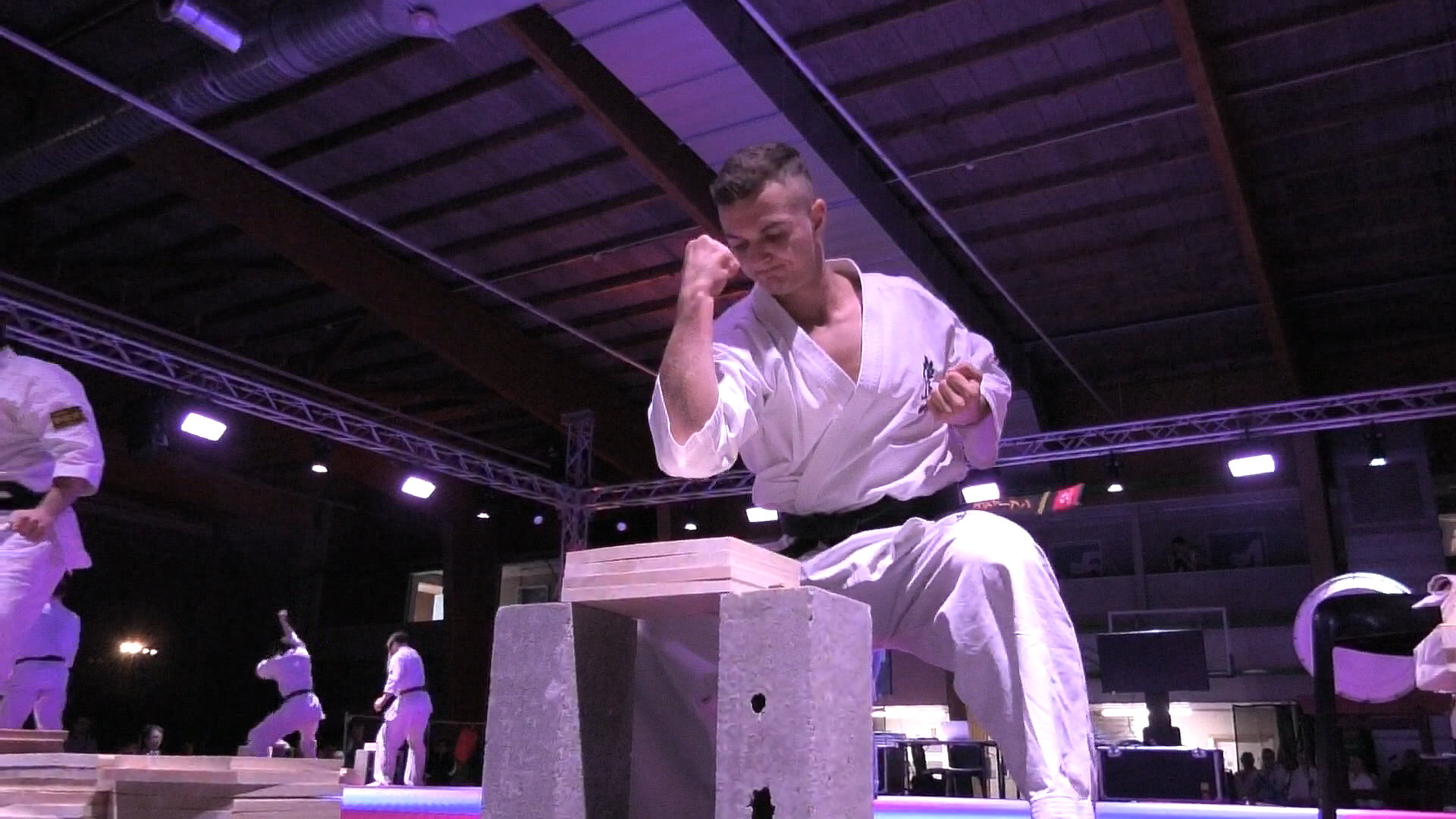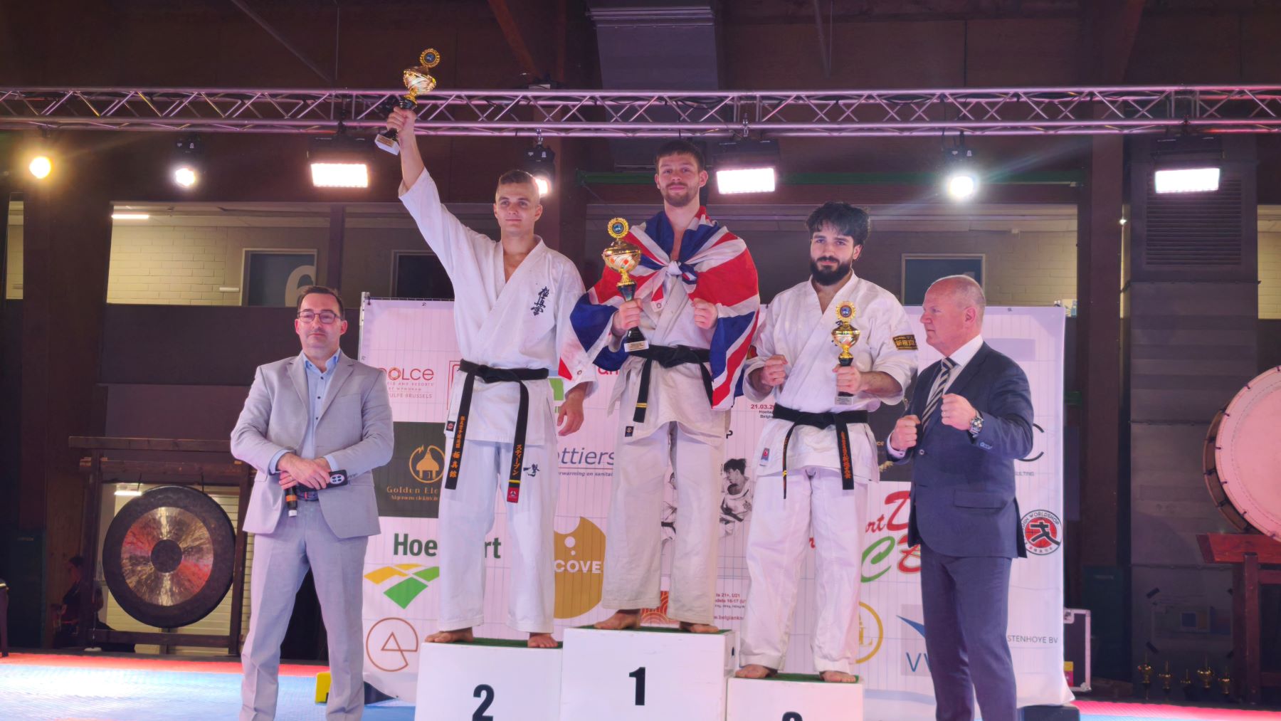 Стивен Деманов решил выступить на открытом чемпионате Бельгии, известном нам по прошлым годам. Там собираются интересные бойцы из Европы и в рамках сразу двух дисциплин – кумитэ и тамэсивари выявляют лучшего в промежуточном этапе сезона. Первый свой поединок Стивен выиграл на иппон досрочно, очень легко переиграв соперника из Норвегии. Во втором поединке он столкнулся с очень хорошим парнем из Бельгии, и настраивался на два времени, пытаясь разогнать свою кондицию к финалу. Однако уже после первого раунда флажки полетели в нашу сторону. А финал вышел более драматичным – соперником Стивена оказался действующий чемпион МИРА IFK – выносливый и опытный боец из Великобритании.