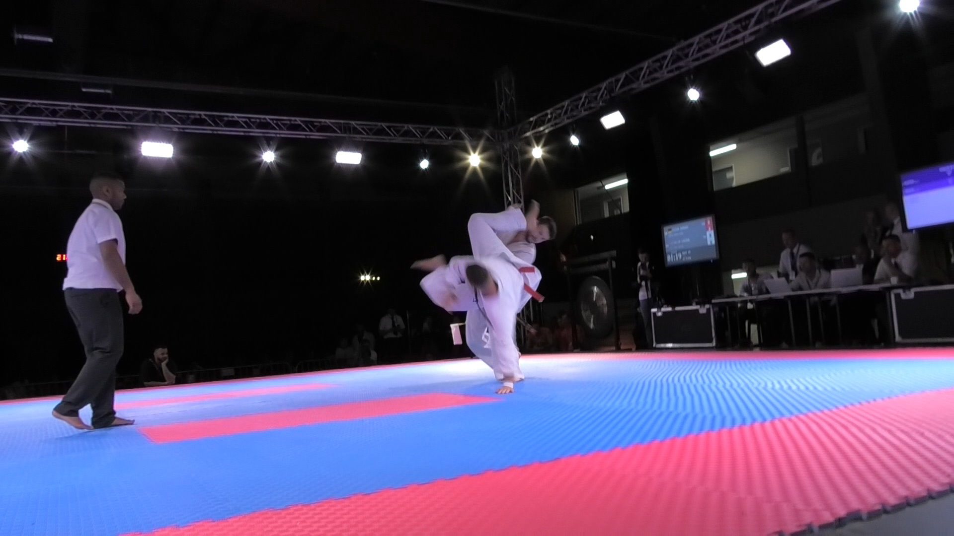 Какова же была наша радость в первые секунды, после проведенной Стивеном техники в падении – кайтен гери в голову соперника, который остановился, развернулся в сторону своего секунданта и буквально “выпал“ из поединка… и каково наше удивление, когда судьи не засчитали нам этот явный вазари! В результате дальнейших раундов, Стивен выигрывал по тамэсивари в случае ничьей, однако и тут судьи оказались коварнее – они уже после завершения второго времени долго совещались и внезапно дали Стивену официальное предупреждение – Гэнтен, что повлияло на решение. Короче говоря – в европейском судействе ничего не поменялось за 25 лет, а наш Сэмпай объективно оказался сильнее чемпиона Мира!